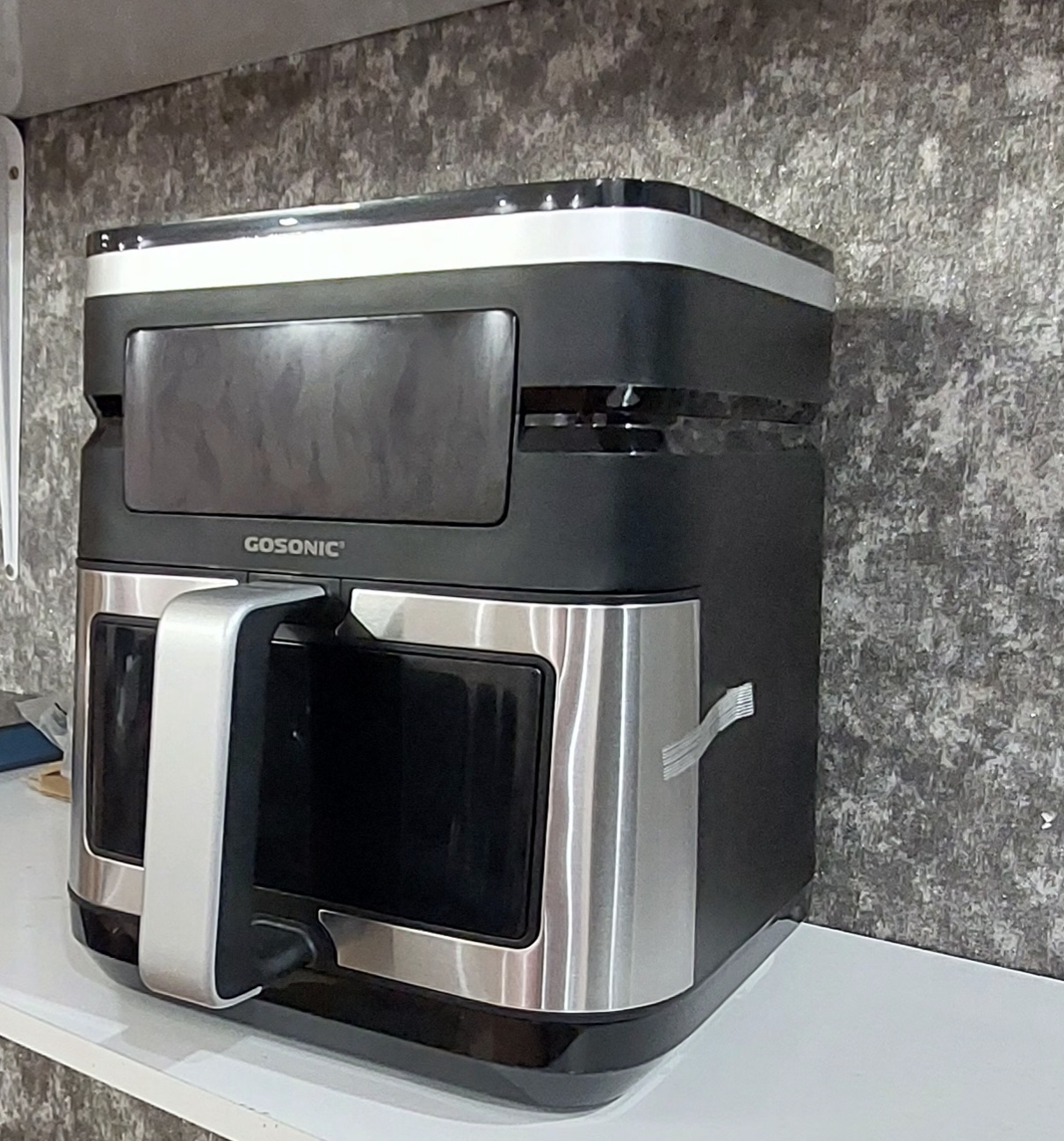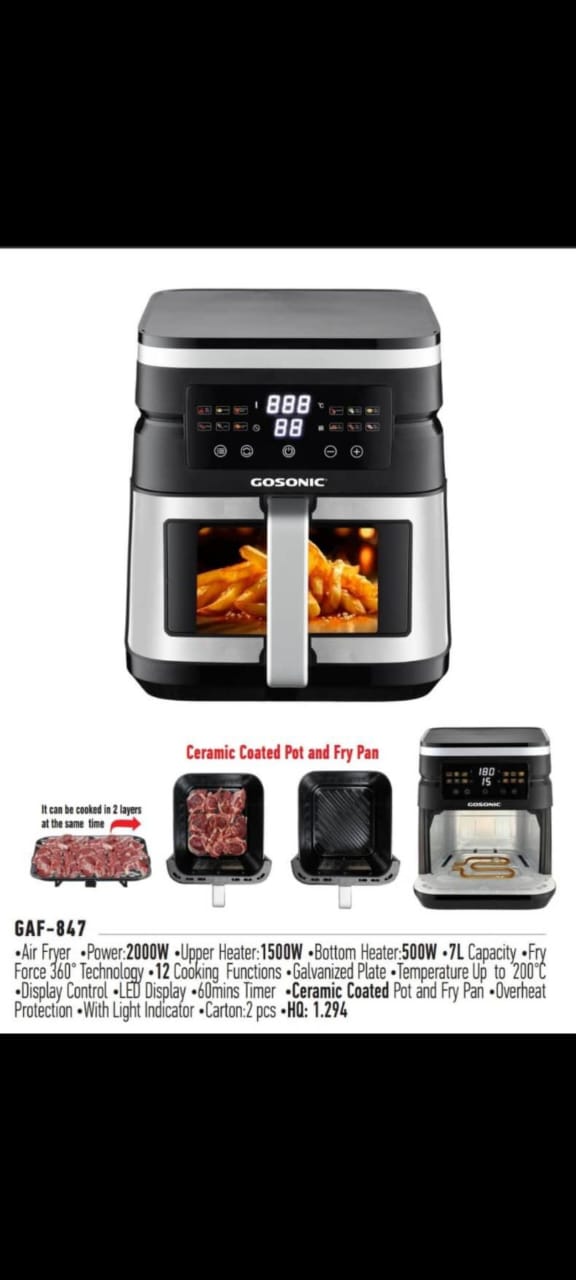سرخ کن بدون روغن گوسونیک مدل 847 از جدیدترین محصولات این برند معتبر می باشد که توانسته محبوبیت خاصی بین طرفداران خود کسب نماید . این سرخ کن بدون روغن با داشتن برنامه های پخت و پز کامل ، کیفیت بالا ،ظرفیت مناسب داخلی ، قابلیت تنظیم دما و توان بالا جز بهترین و پرفروش ترین های بازار ایران می باشد . ظرفیت این دستگاه 7لیتر بوده که این ظرفیت مناسب برای 4 تا 6 نفر می باشد . این دستگاه هم مانند سرخ کن های دیگر با استفاده ازچرخش هوای داغ و بدون نیاز به روغن باعث سرخ شدن مواد غذایی می شود و دارای یه سبد با روکش نچسب بوده که باعث میشود غذا و مواد غذایی به بدنه دستگاه نچسبد . این سرخ کن دارای 12 برنامه پخت و پز ، تنظیم دستی دما و حرارت و همچنین یک پنجره بروی سبد آن می باشد که میتوانید عملکرد آن را مشاهده کنید . این دستگاه دارای توان 2000 وات وحرارت بین 80 تا 200 درجه را داراست .این دستگاه باعث صرفه جویی در زمان و انرژی ، پخت سالم و بدون روغن اضافی می گردد و با توجه به طراحی زیبا ،عملکرد قوی و قیمت مناسب ، انتخابی هوشمندانه برای شماست که میتوانید آن را از فروشگاه دیجی آکو آن را تهیه نمایید .