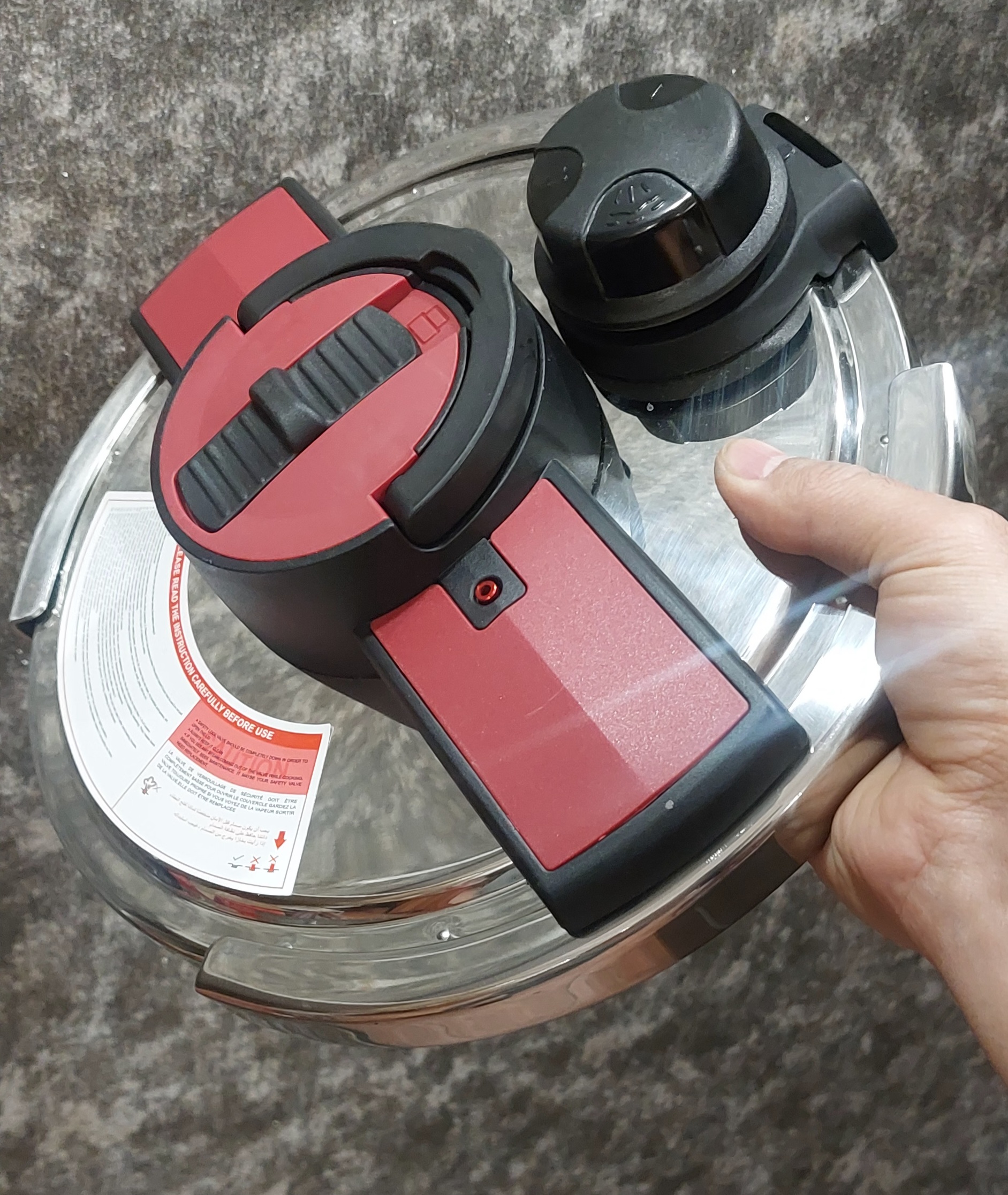 بعنوان نکته آخر در نظر داشته باشید که هنگام اتمام پخت و پز قبل از اینکه از طریق سیستم سوپاپ اطمینان از تخلیه فشار هوا مطمین نشده اید اقدام به باز کردن درب محصول ننمایید .